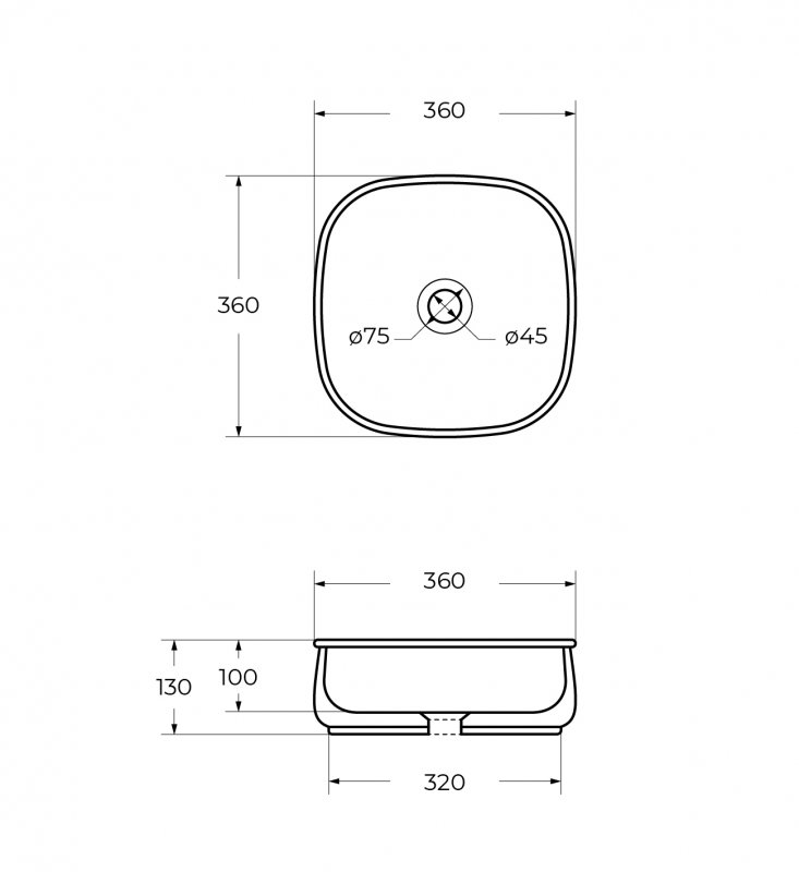 •Габаритные размеры раковины: 360х360х130 мм