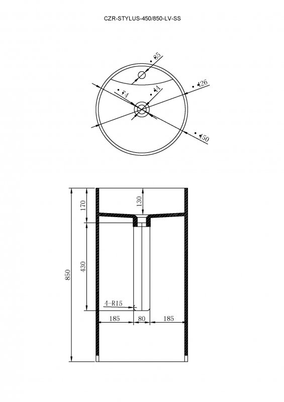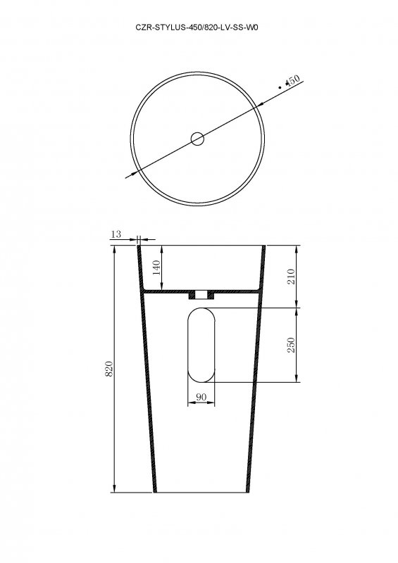 CZR-STYLUS-450/850-LV-SSНапольная раковина из искусственного камня Solid Surface с отверстием под смеситель