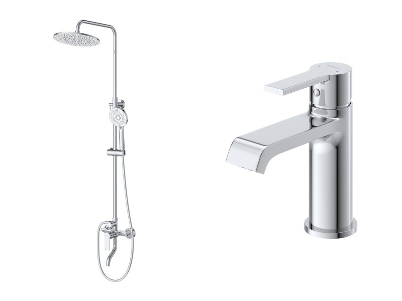 AURORA-VSCM/LVM-CRMКомплект для ванной - душевая стойка с изливом и смеситель для раковиныХром