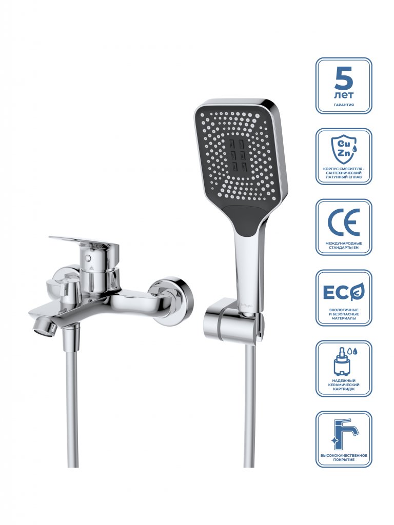 DUE-VASM-CRMСмеситель для ванны и душа в комплекте с ручным душем, шлангом и держателемХром