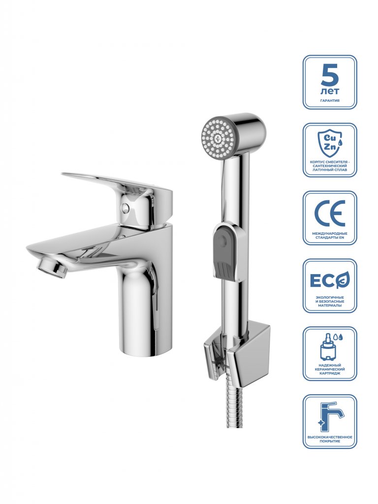 Гарантия на аксессуары к смесителю (гибкий шланг, душевая лейка, держатель для лейки) составляет 1 год