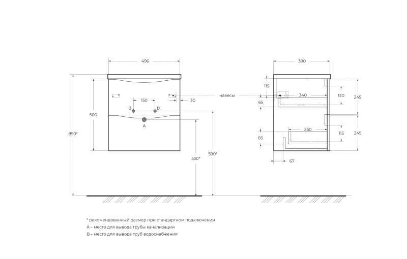 MARINO-CER-MINI-500-2C-SO-BO-P | База под раковину подвесная с двумя выкатными ящиками | 496x390x500 | Bianco Opaco