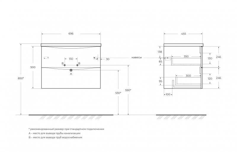 MARINO-CER-N-700-2C-SO-BO-P | База под раковину подвесная с двумя выкатными ящиками | 696x455x500 | Bianco Opaco