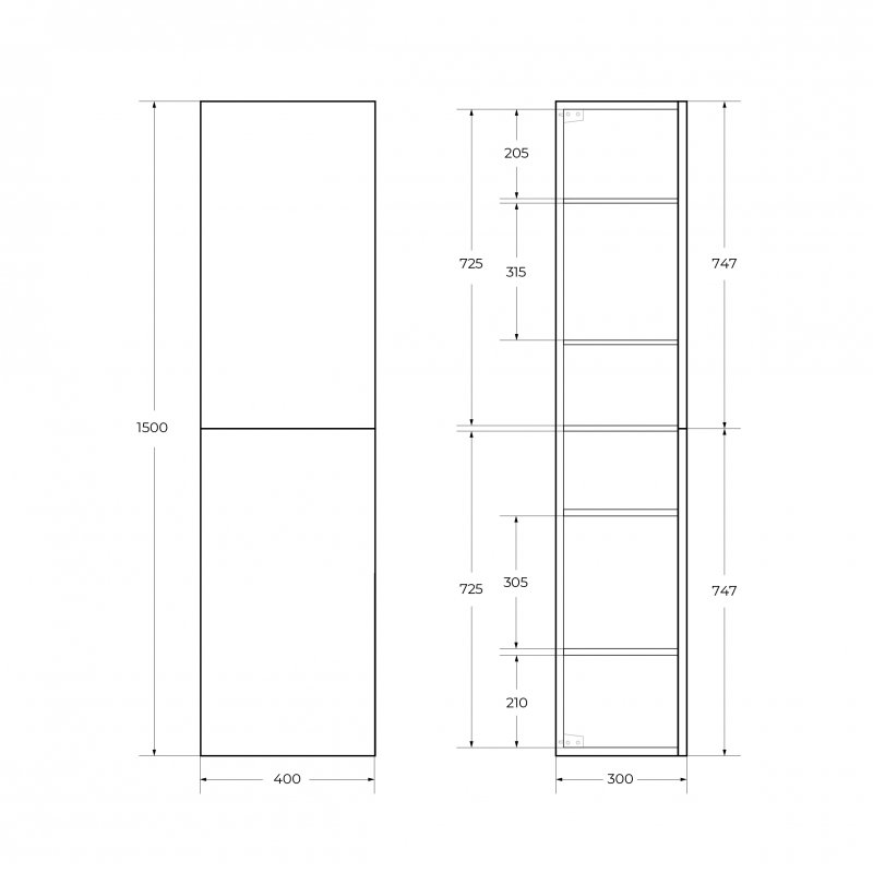 DUE-1500-2A-SC-NOCE-PШкаф подвесной с двумя распашными дверцами с доводчиками, с двумя полками, универсальный, 400x300x1500Noce