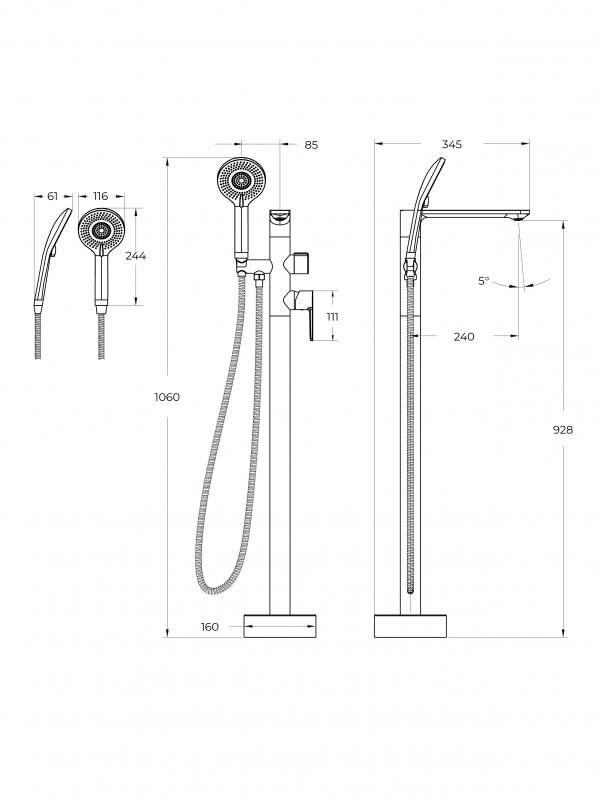 LUX-VDP-01Напольный смеситель для ванны и душа, однорычажный с ручным душемХром