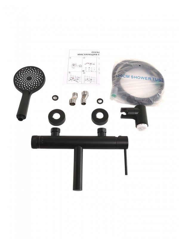 RELAX-VD-NOPСмеситель для ванны и душа в комплекте с ручным душем, шлангом и держателемЧерный матовый