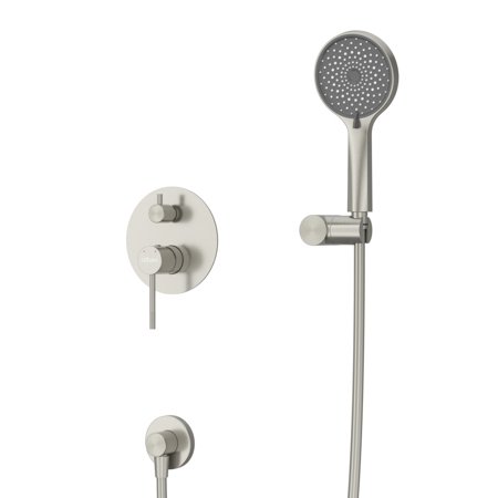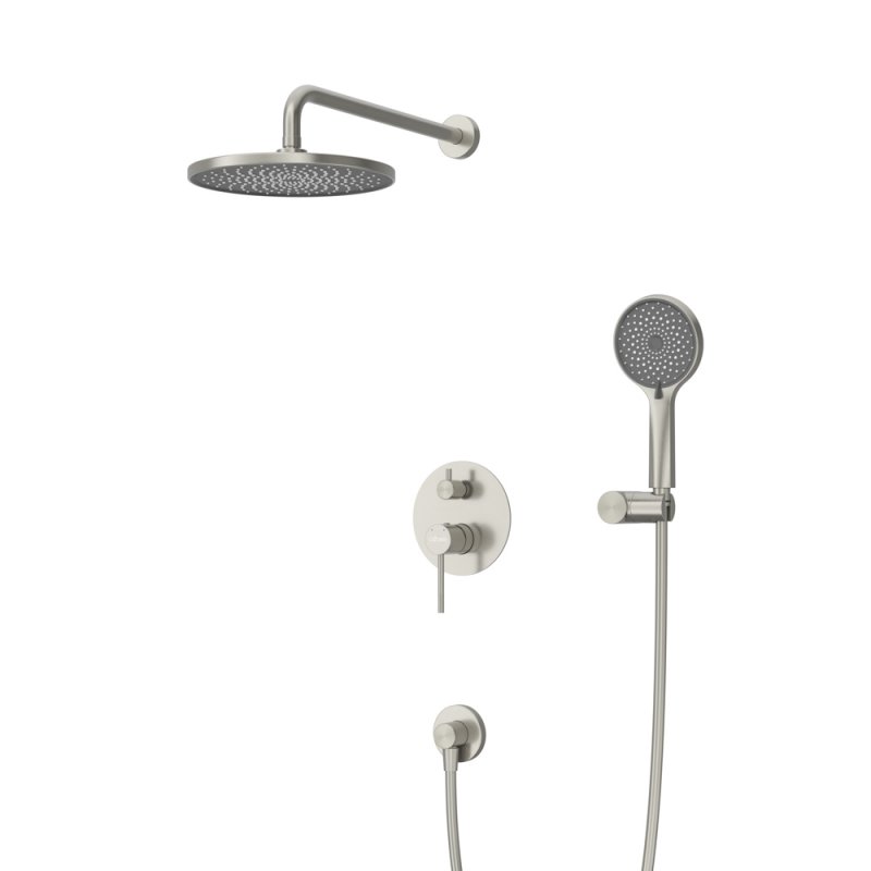 Оснащение: встраиваемый смеситель с переключателем на два выхода, верхний душ с кронштейном, ручной душ 3-х режимный со шлангом, штуцером и держателем