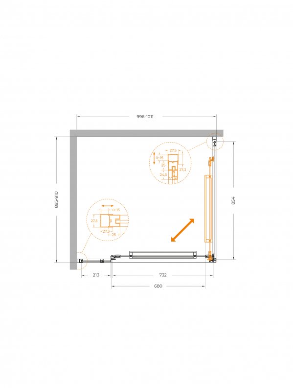 | LUX-AH-FS-11-100/90-C-CR | 1000x900x1950 | (996-1011)x(895-910)x1950 | Хром