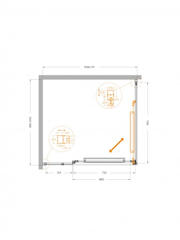 | LUX-AH-FS-11-110/100-C-CR | 1100x1000x1950 | (1096-1111)x(995-1010)x1950 | Хром