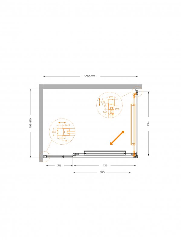 | LUX-AH-FS-11-110/80-C-CR | 1100x800x1950 | (1096-1111)x(795-810)x1950 | Хром