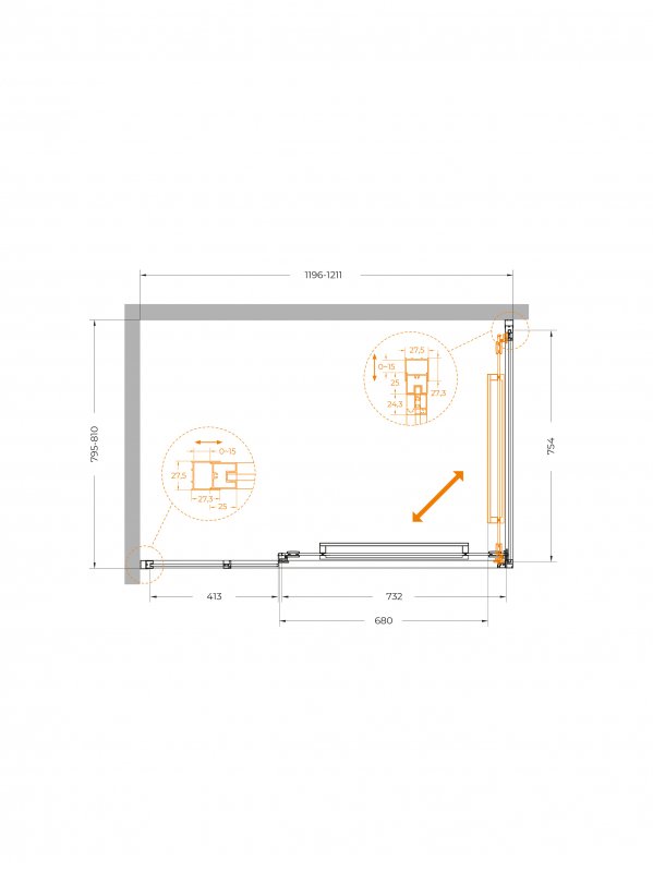 | LUX-AH-FS-11-120/100-C-CR | 1200x1000x1950 | (1196-1210)x(995-1010)x1950 | Хром