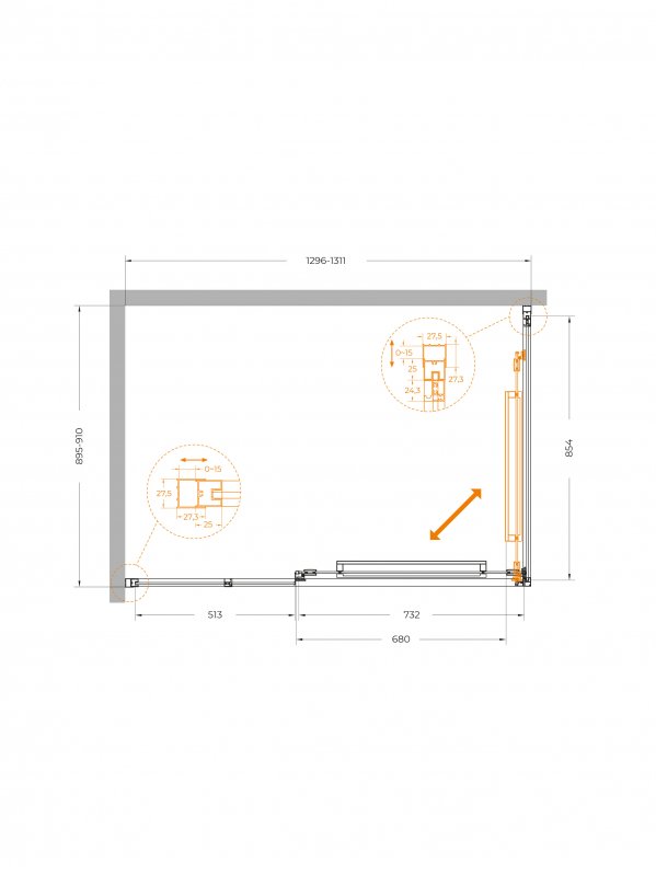 | LUX-AH-FS-11-130/100-C-CR | 1300x1000x1950 | (1296-1310)x(995-1010)x1950 | Хром