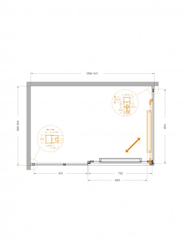 | LUX-AH-FS-11-140/90-C-CR | 1400x900x1950 | (1396-1410)x(895-910)x1950 | Хром