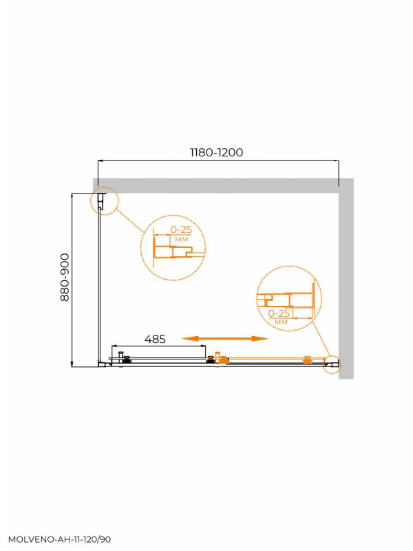 | MOLVENO-AH-11-120/90-P-Cr | 1200x900x1950 | (1180-1200)x(880-900)x1950 | 485