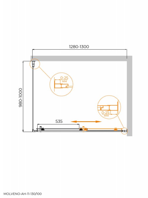 | MOLVENO-AH-11-130/80-P-Cr | 1300x800x1950 | (1280-1300)x(780-800)x1950 | 535
