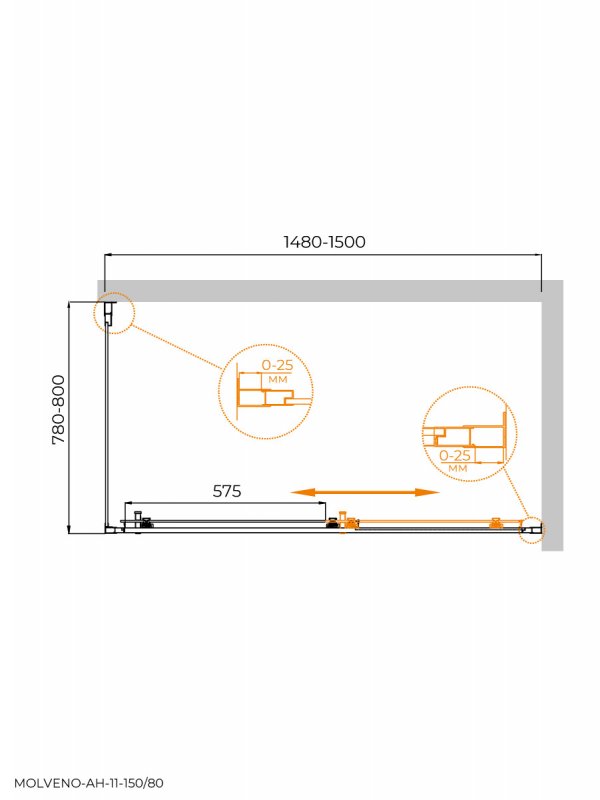 | MOLVENO-AH-11-150/80-P-Cr | 1500x800x1950 | (1480-1500)x(780-800)x1950 | 575