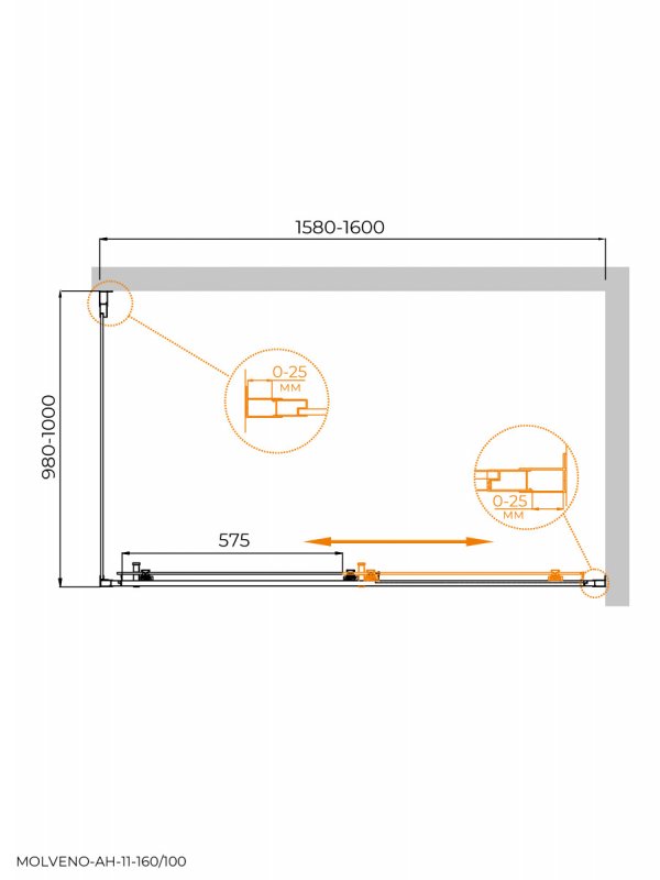 | MOLVENO-AH-11-160/90-C-Cr-IV | 1600x900x1950 | (1580-1600)x(880-900)x1950 | 575