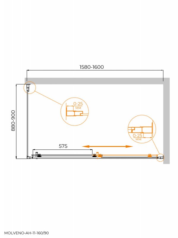 | MOLVENO-AH-11-160/90-C-BORO-IV | 1600x900x1950 | (1580-1600)x(880-900)x1950 | 575