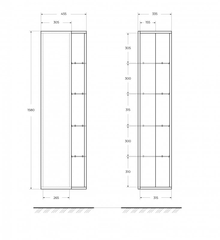 53172Колонна подвесная с открытыми полками и одной распашной дверцей, реверсивная 450х320х1580Rovere scuro Soft