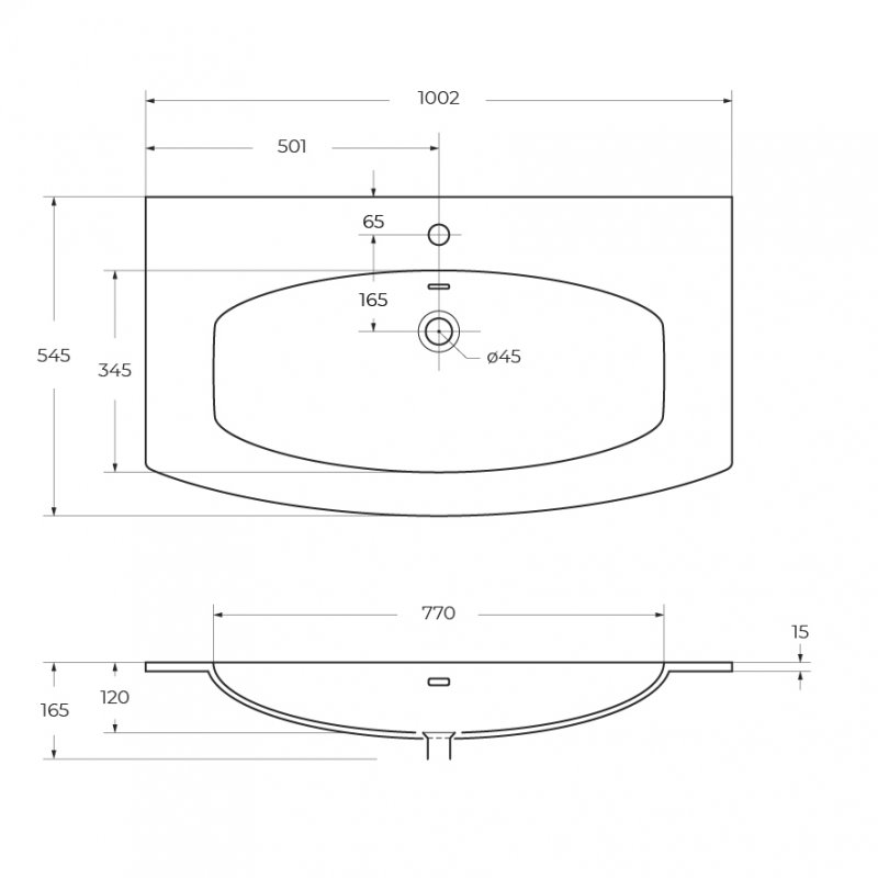 50195Раковина из искусственного мрамора, 101x52x1,5Bianco