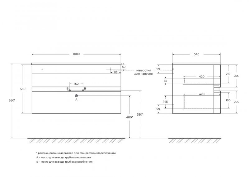 55526База под раковину с двумя выдвижными ящиками 100x51x55Grafite