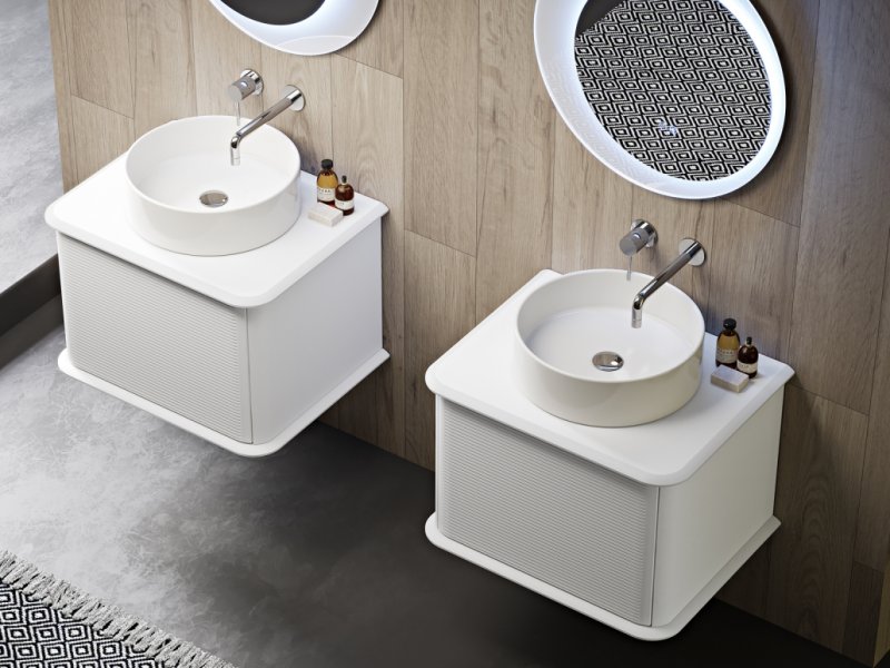55798 | Тумба подвесная под раковину с выдвижным ящиком 64x50x42 | Plisse | Bianco opaco