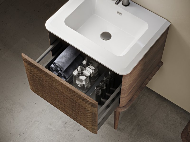 55803 | Тумба подвесная под раковину с выдвижным ящиком 64x50x42 | Plisse | Rovere Tabacco