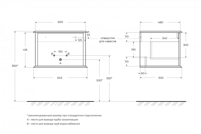 55799 | Тумба подвесная под раковину с выдвижным ящиком 64x50x42 | Plisse | Cotone