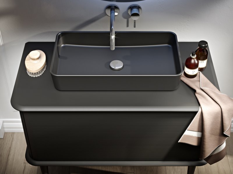 55807 | Тумба подвесная под раковину с выдвижным ящиком 98x50x42 | Plisse | Nero opaco