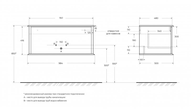 55805 | Тумба подвесная под раковину с выдвижным ящиком 98x50x42 | Plisse | Cotone