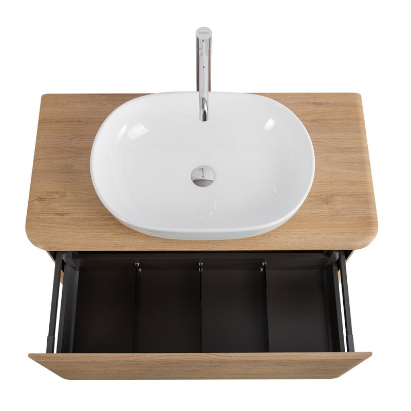 55809 | Тумба подвесная под раковину с выдвижным ящиком 98x50x42 | Plisse | Rovere Tabacco