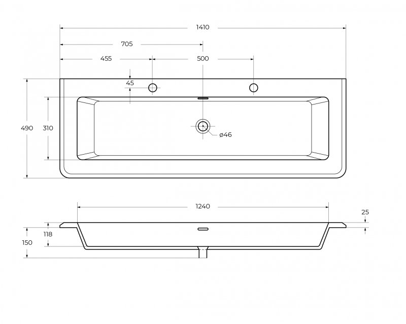 50265 | Раковина из искусственного мрамора 141x49 | | Bianco opaco