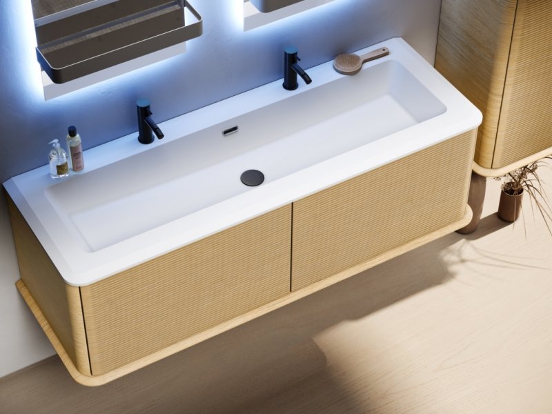 55815 | Тумба подвесная под раковину с двумя выдвижными ящиками 144x50x42 | Plisse | Rovere Tabacco