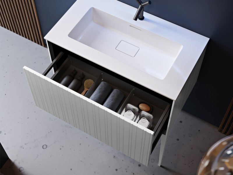 55929 | Тумба подвесная под раковину с выдвижным ящиком 80,7x45,3x43 | Plisse | Bianco opaco
