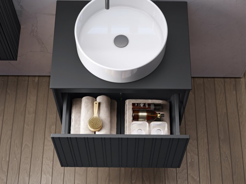 55928 | Тумба подвесная под раковину с выдвижным ящиком 60,3x45,3x43 | Plisse | Nero Opaco