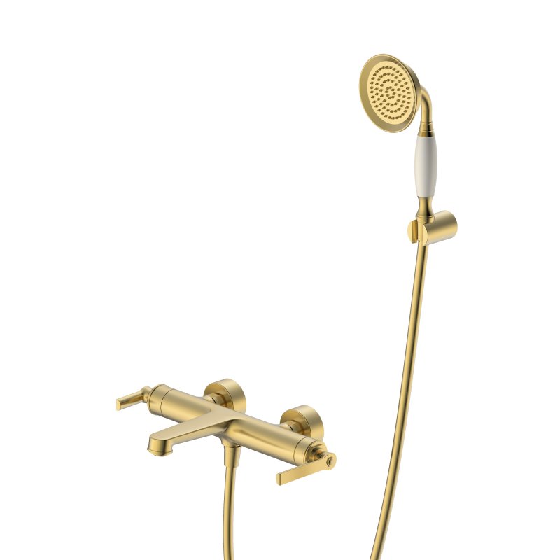 BOHEME-VASM-BOROСмеситель для ванны и душа в комплекте с ручным душем, шлангом и держателемБрашированное золото