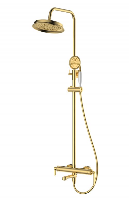 BOHEME-VSCM-BOROДушевая стойка со смесителем и изливом, верхним и ручным душемБрашированное золото