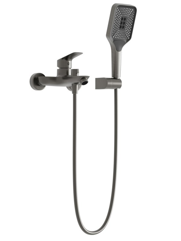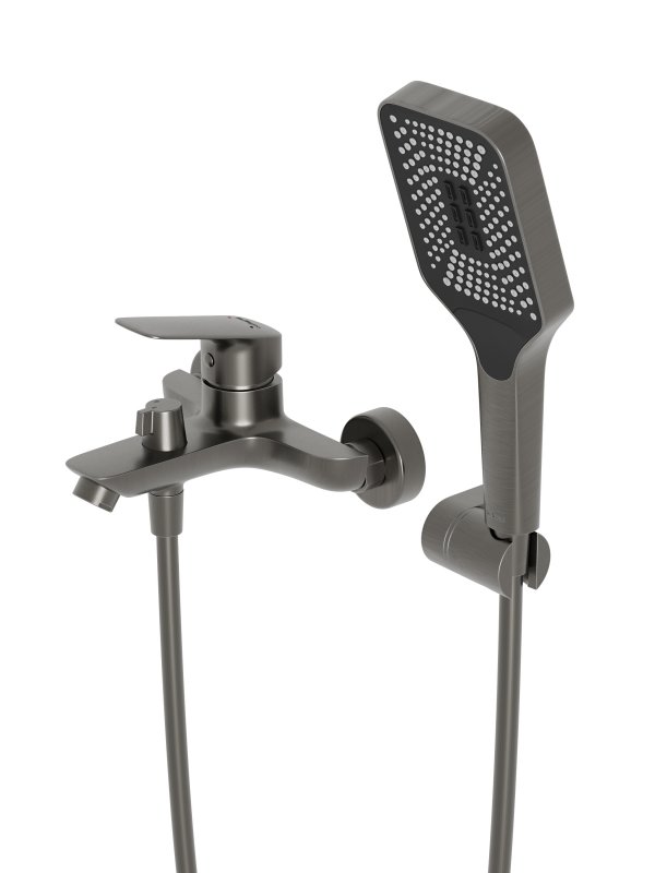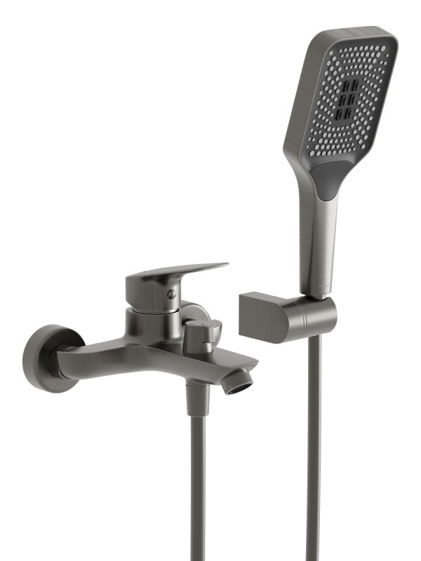 DUE-VASM-GMСмеситель для ванны и душа в комплекте с ручным душем, шлангом и держателемОружейная сталь