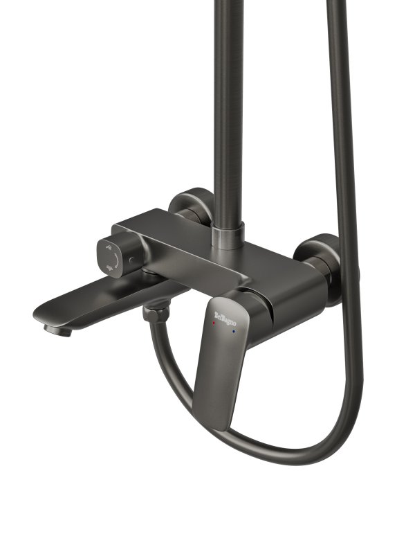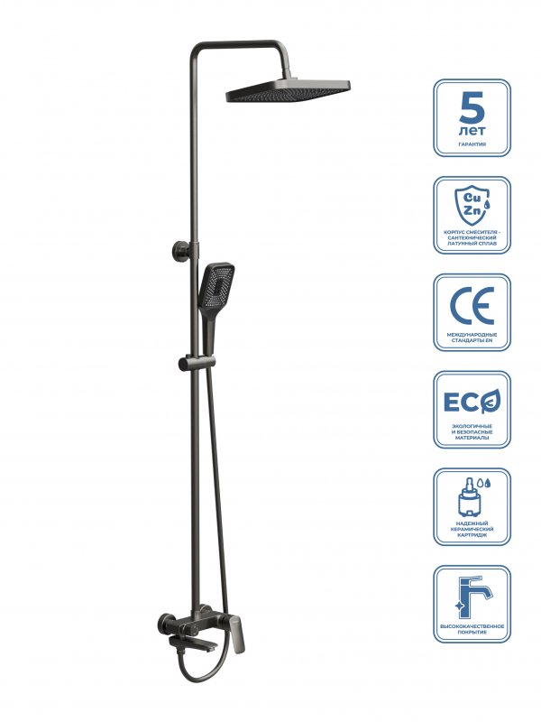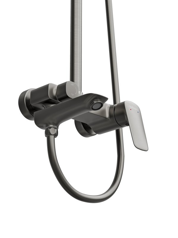 DUE-VSCM-GMДушевая стойка со смесителем,изливом, верхним и ручным душемОружейная сталь