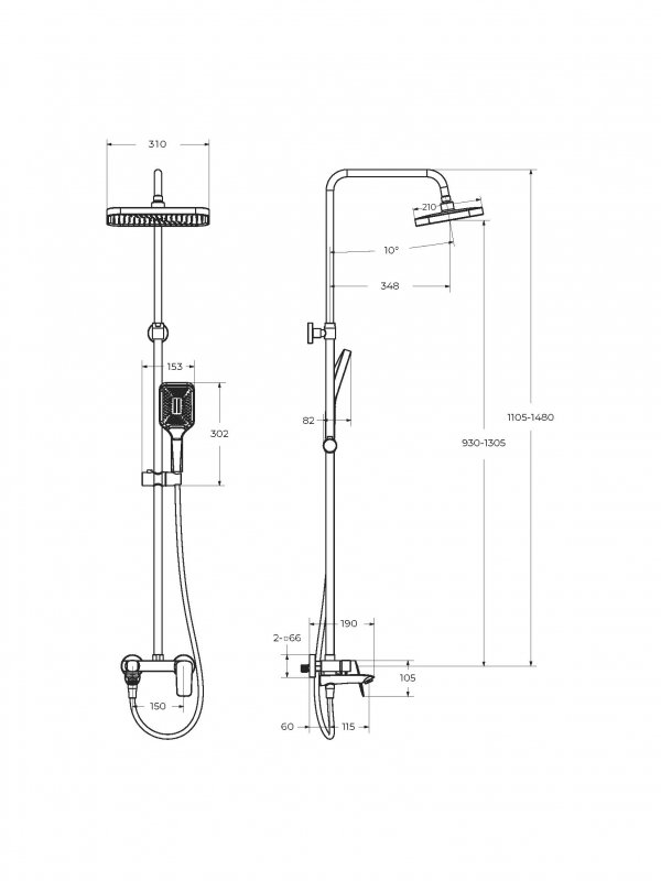 Дополнительная информация: регулируемая высота верхнего душа