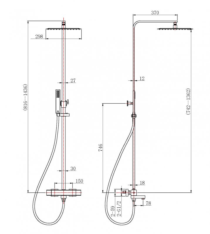 Дополнительная информация: регулируемая высота верхнего душа