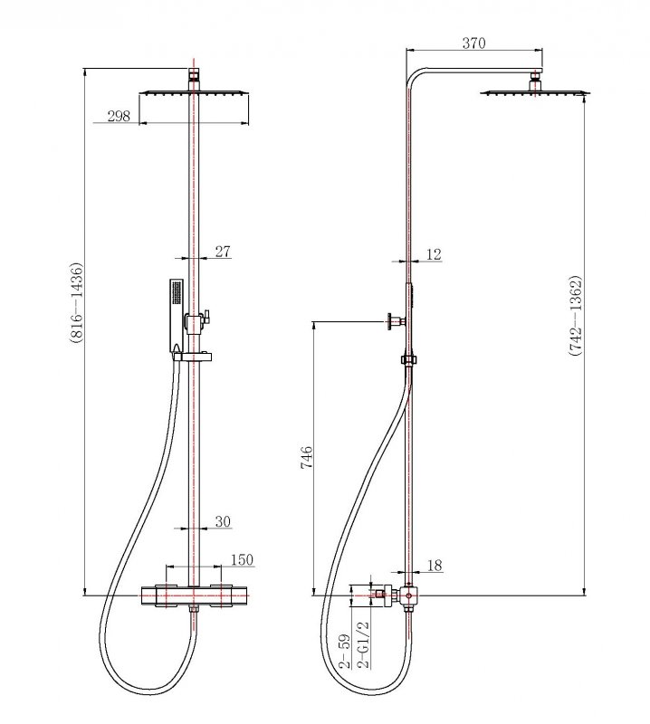 Дополнительная информация: регулируемая высота верхнего душа