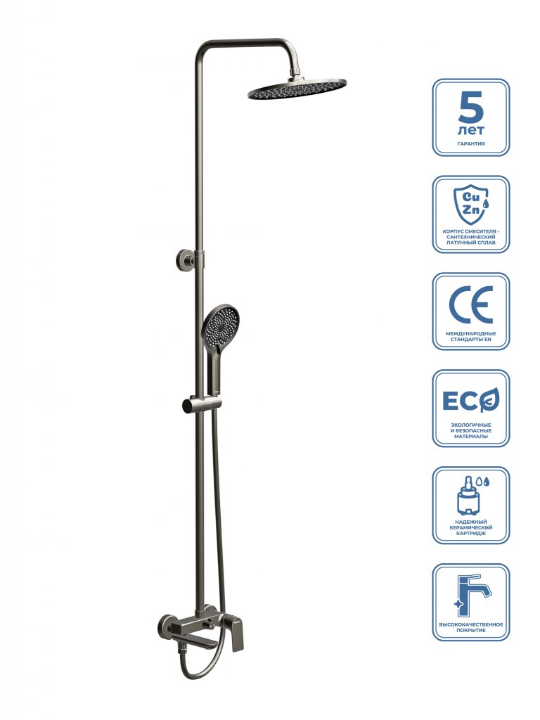 MARINO-VSCM-GMДушевая стойка со смесителем, изливом, верхним и ручным душемОружейная сталь