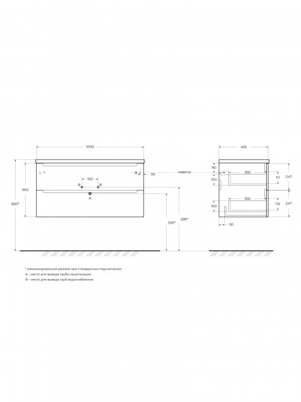 | ETNA-1000-2C-SO-GSO | База под раковину подвесная с двумя выкатными ящиками, с доводчиками 1000x455x500 | Темно-Серый Матовый