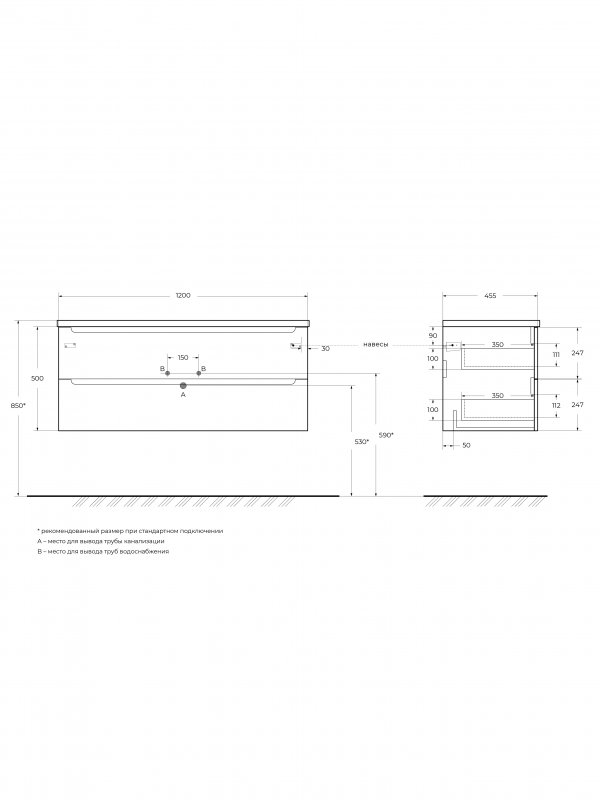 | ETNA-1200-2C-SO-GSO | База под раковину подвесная с двумя выкатными ящиками, с доводчиками 1200x455x500 | Темно-Серый Матовый
