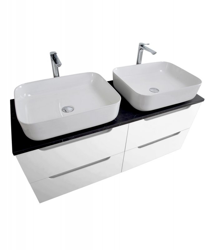 EK-140-2-BOСтолешница из МДФ с двумя отверстиями под раковину и с двумя отверстиями под смесительBianco Opaco