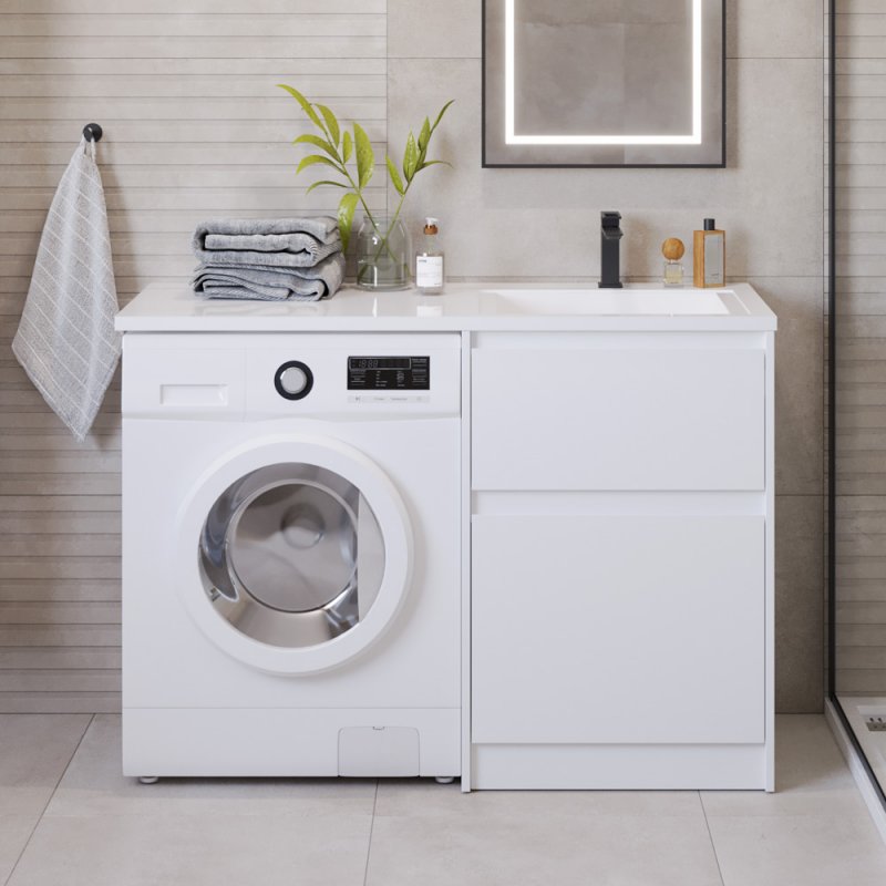 KRAFT-LVD-580/1200-2C-PIA-BOБаза под раковину напольная с двумя выкатными ящиками для установки рядом со стиральной машинкойBianco Opaco
