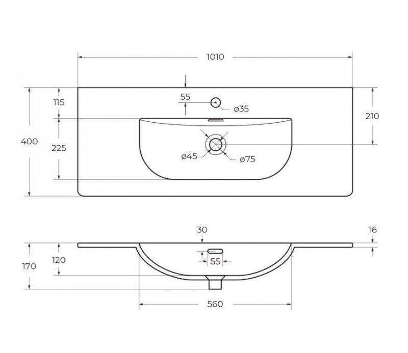 BB-8099-3-100Керамическая раковина 1010x400x170Белый