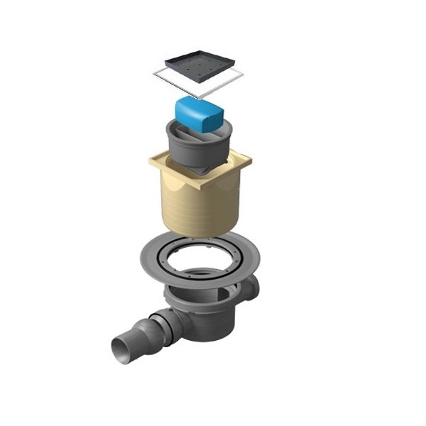 13000109 | Точечный трап 100х100 мм Confluo Standard Dry 3 Ceramic,с сухим затвором,полая под плитку, с рамкой | Хром