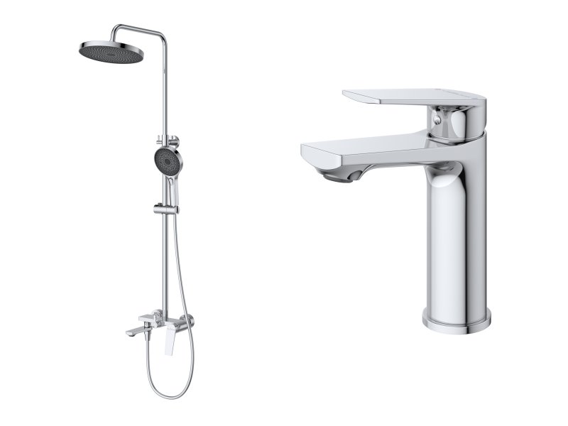 COMFORT-CVD/LS-01Комплект для ванной - душевая стойка с изливом и смеситель для раковиныХром